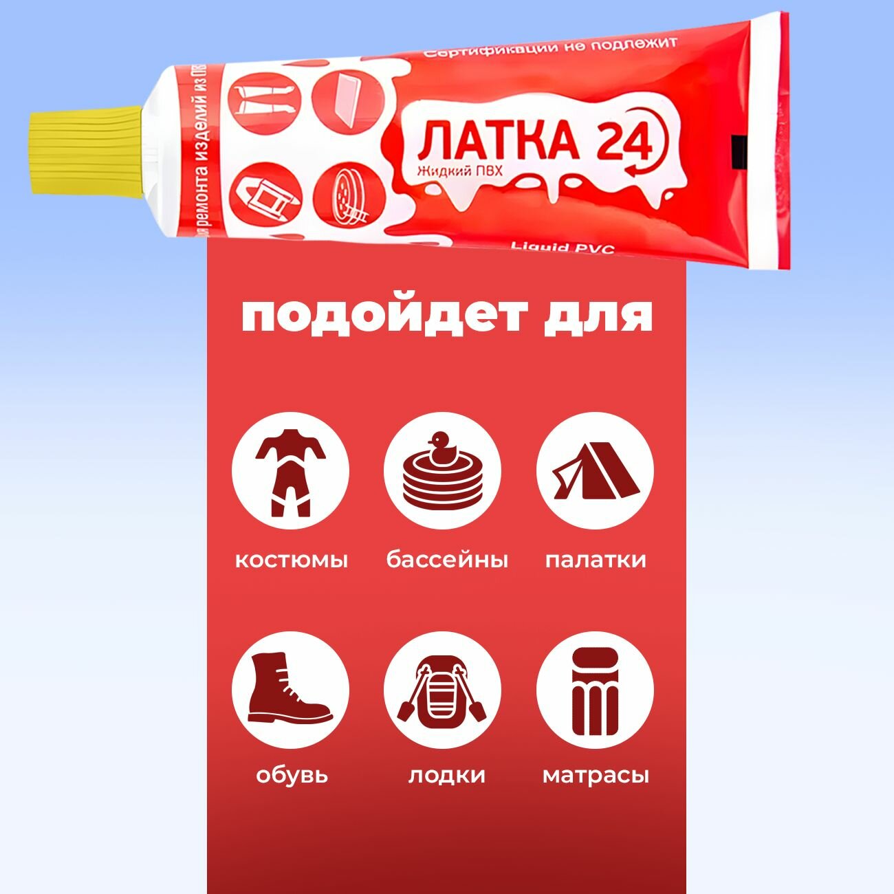 Жидкая Латка 24, заплатка, клей водостойкий 25г для ремонта изделий из ПВХ, лодок, матрасов, бассейнов, цвет красный