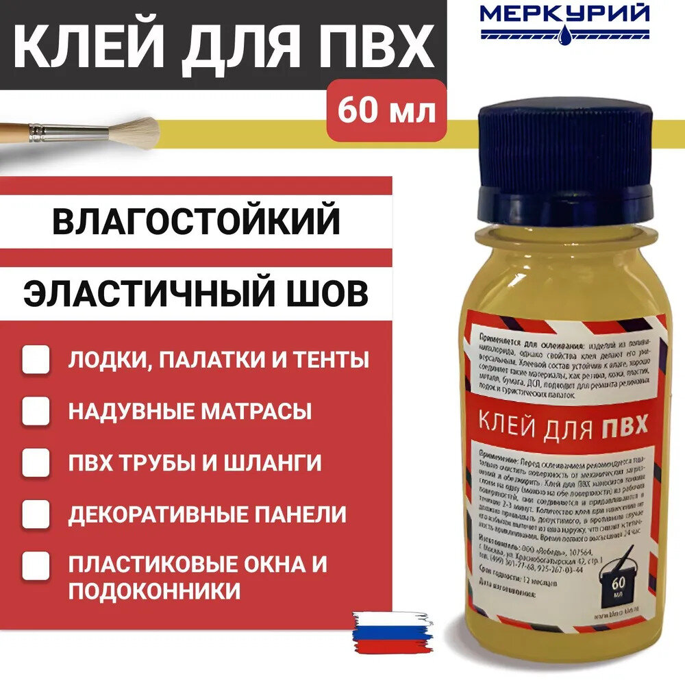 Клей для ПВХ Меркурий, влагостойкий, 60 мл информация: