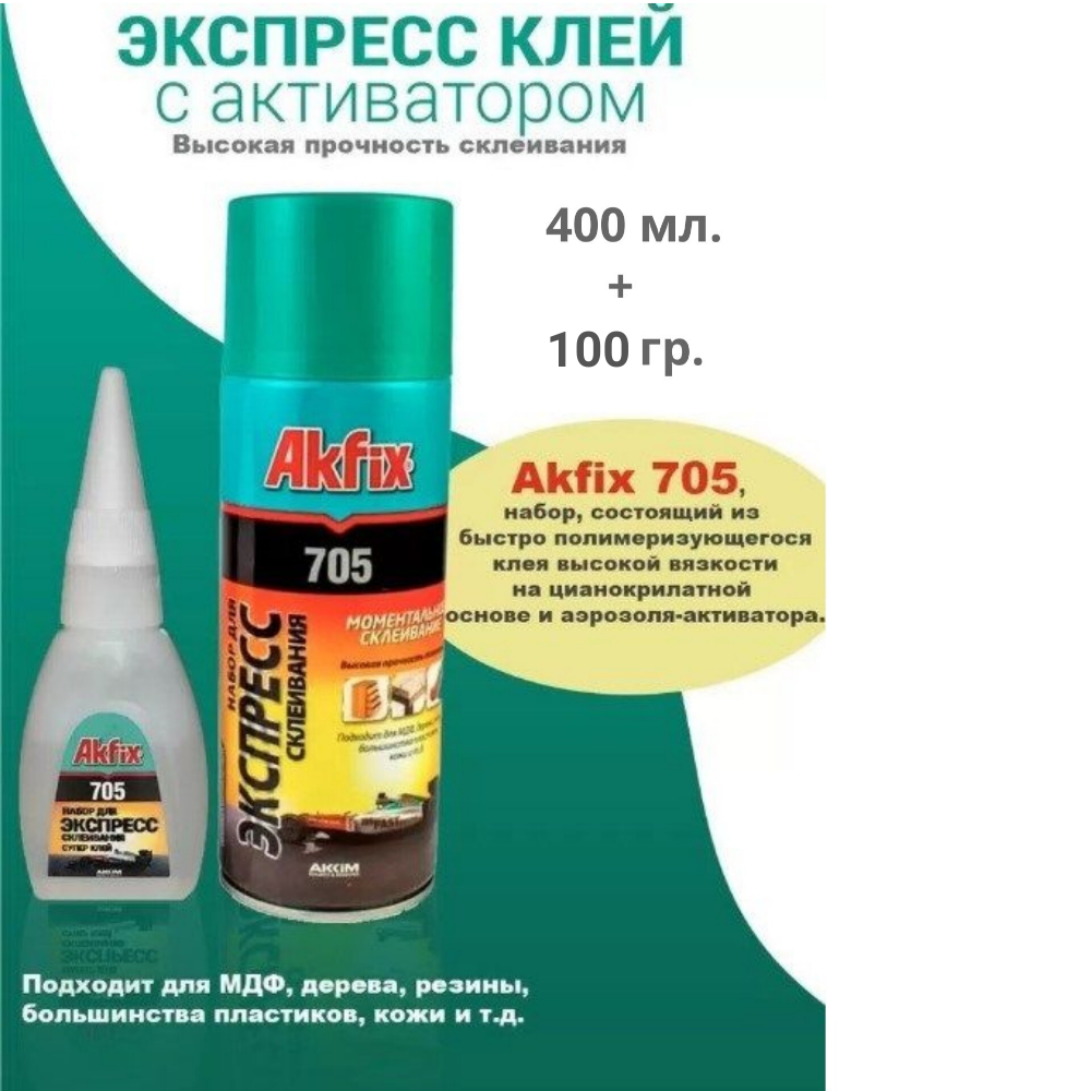 Клей Akfix 750/набор для экспресс склеивания (Активатор 400мл. + Клей 100гр.) информация: