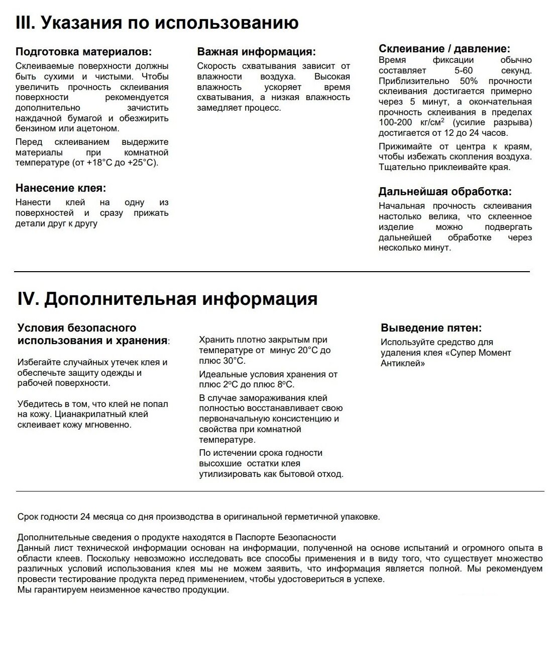 | Свойства | водостойкий / моментальный / морозостойкий / прозрачный / термостойкий |