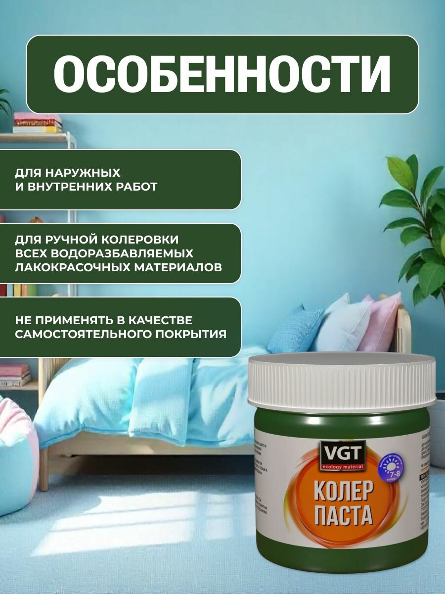 Паста колеровочная концентрированная для водоразбавляемых лакокрасочных материалов VGT (0,10кг) ярко-зеленая