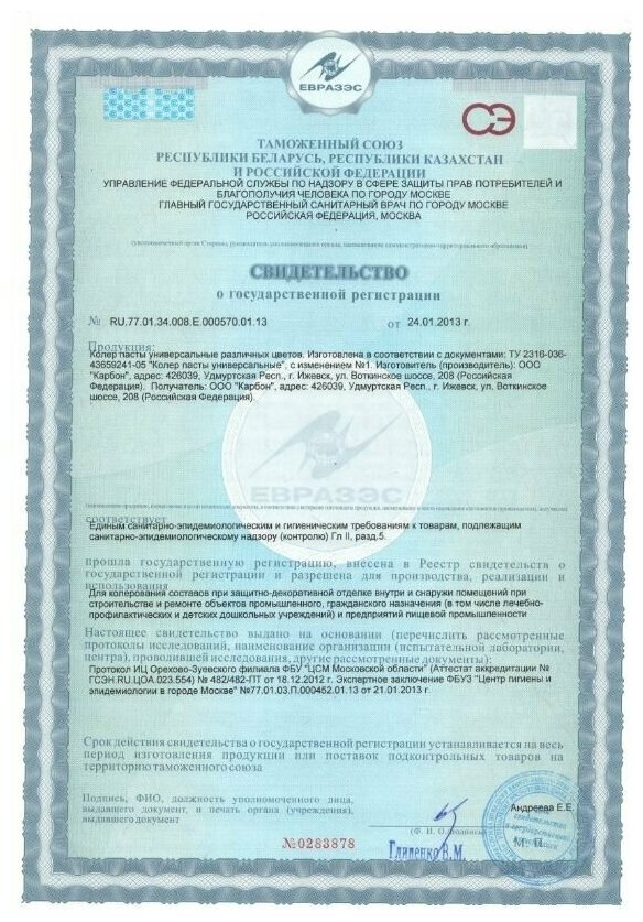 | Основа колера | органическая |