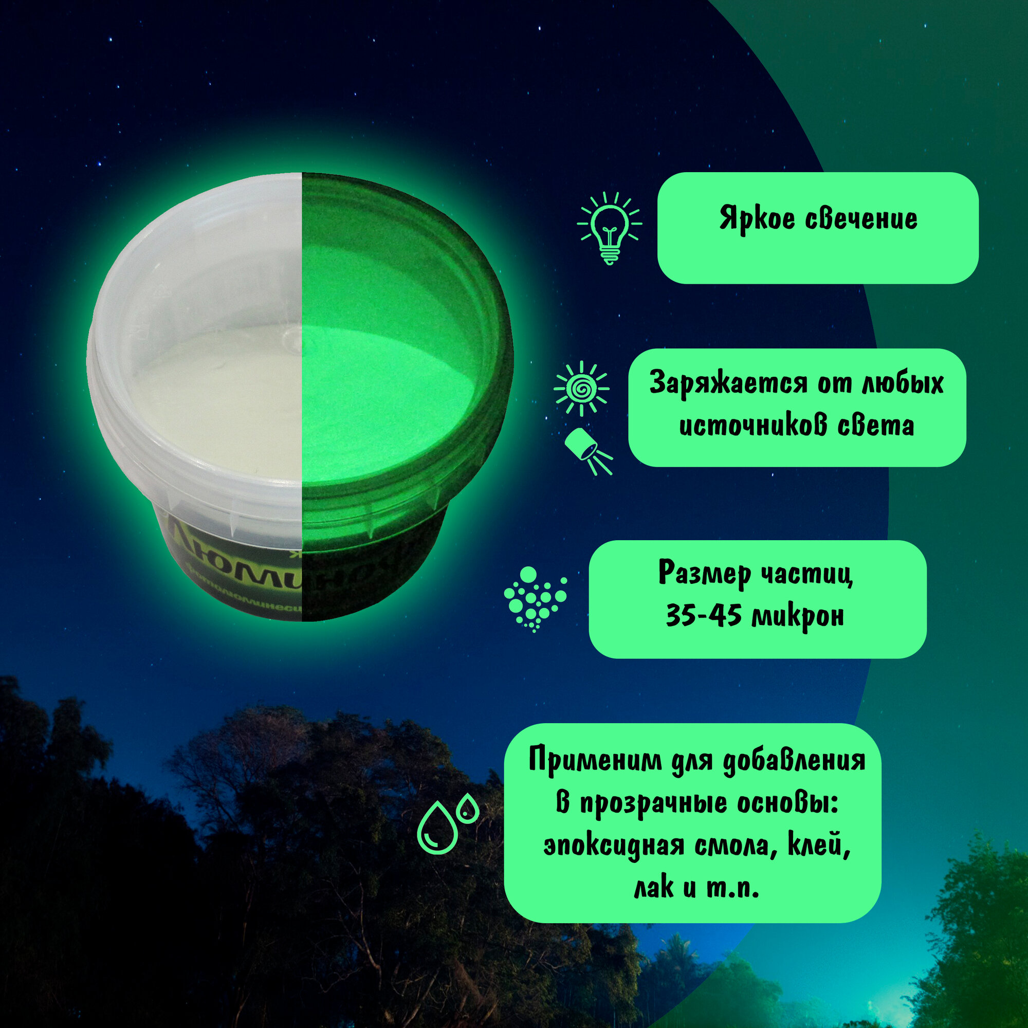 10 цен на Люминофор (Фотолюминесцентный пигмент), Зелёное свечение 100 гр.
