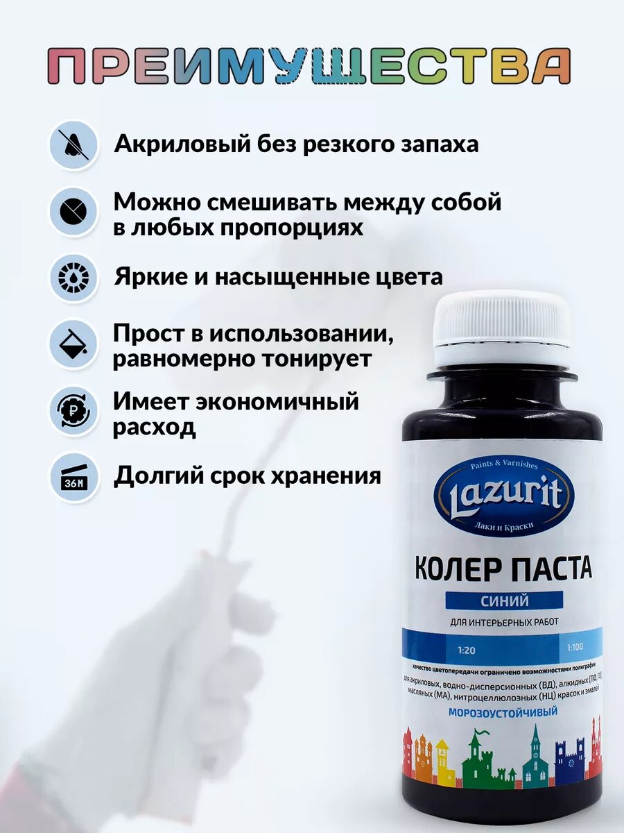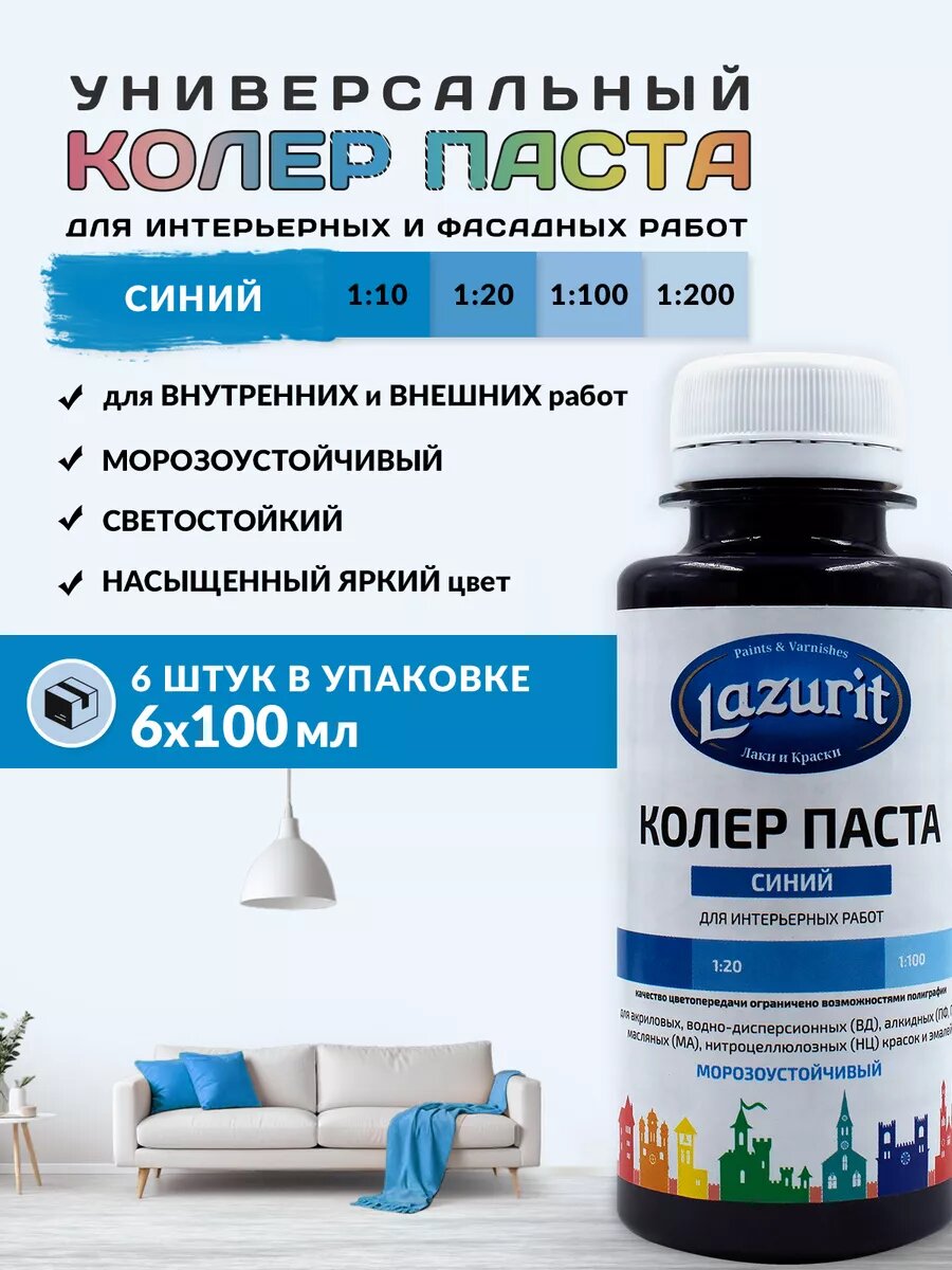 Колер-паста LAZURIT синий 100 мл/6шт информация: