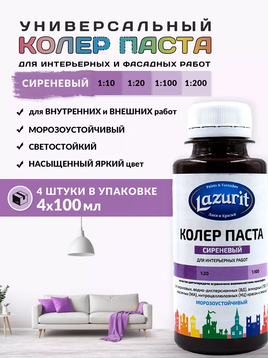 Колер-паста LAZURIT сиреневый 100 мл/4шт информация: