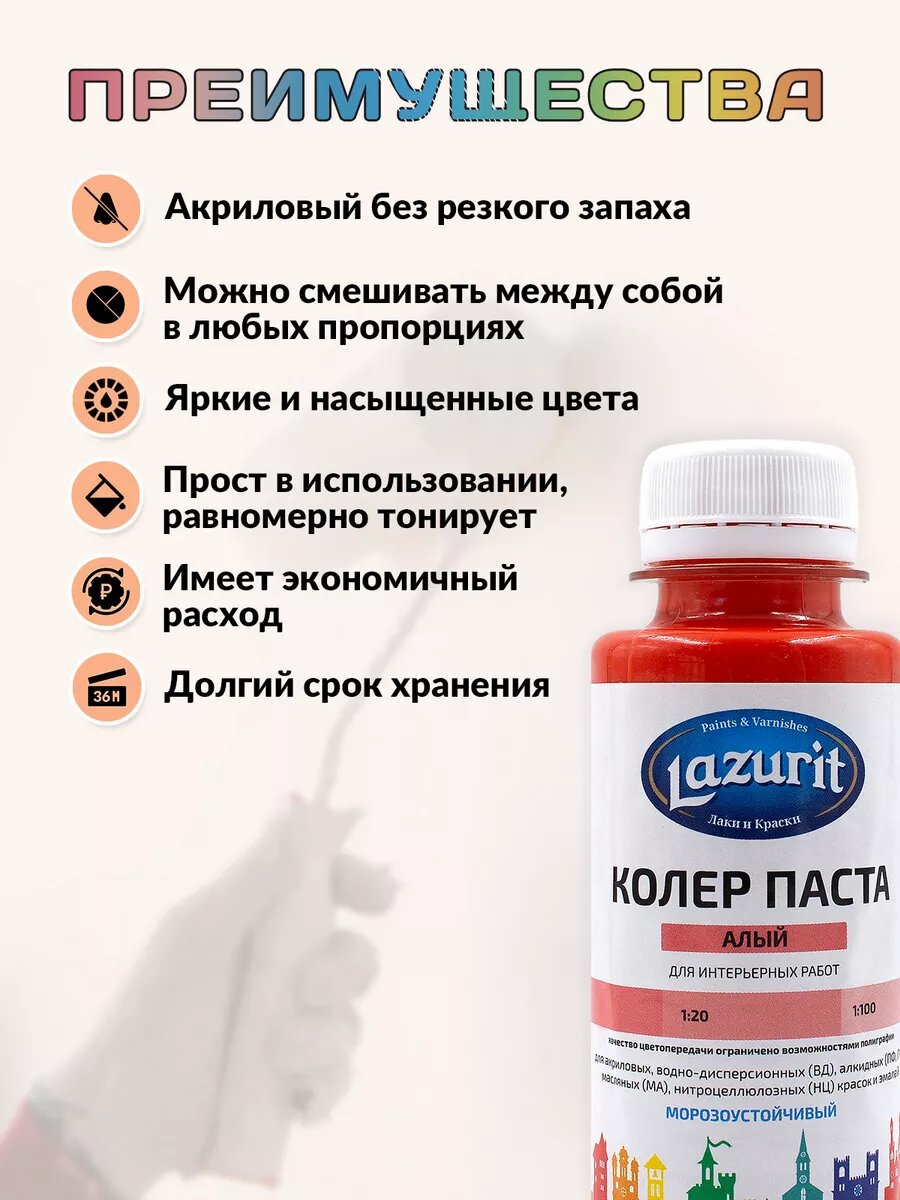 Колер-паста LAZURIT алый 100 мл/4шт информация: