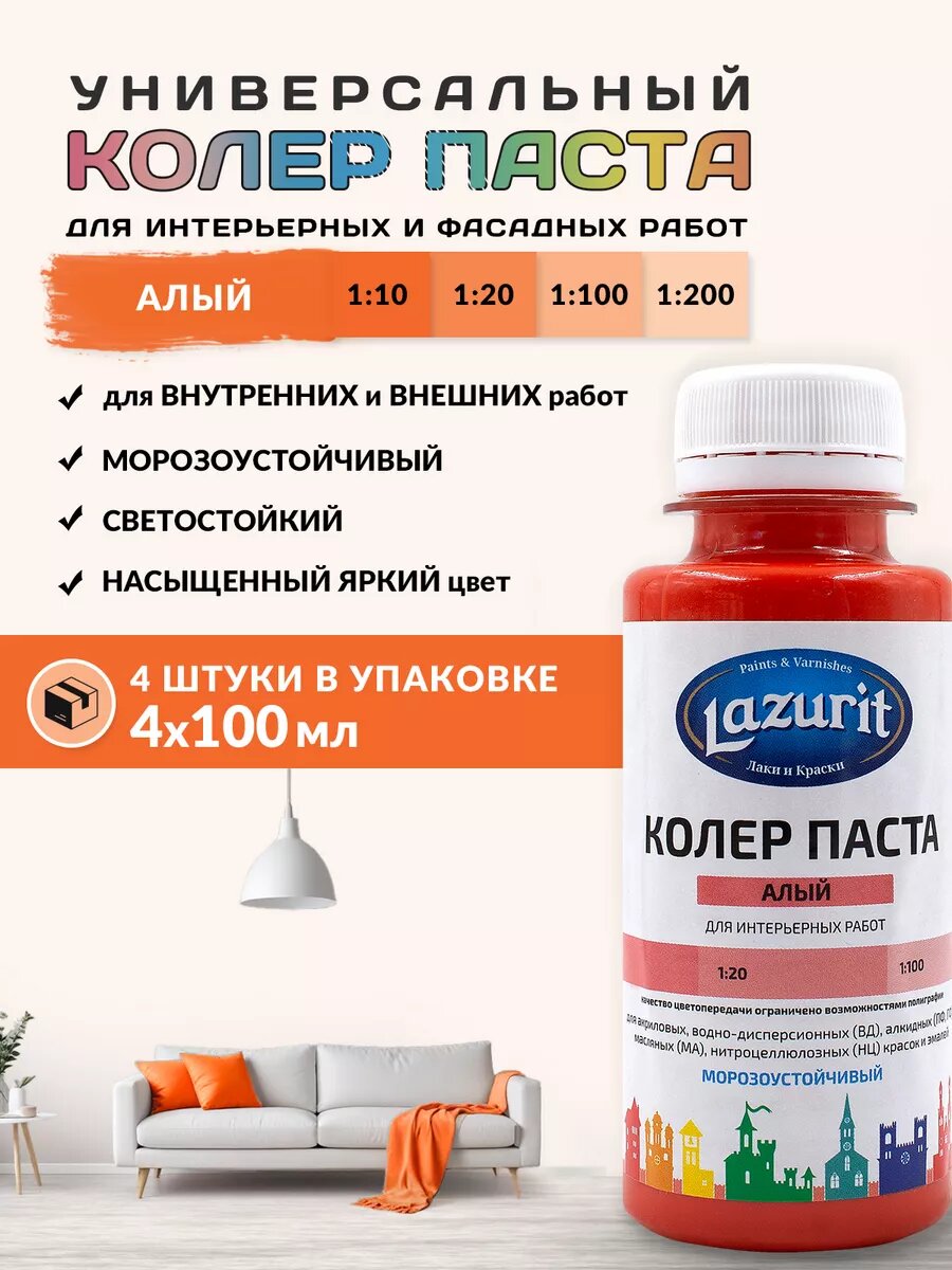 10 цен на Колер-паста LAZURIT алый 100 мл/4шт
