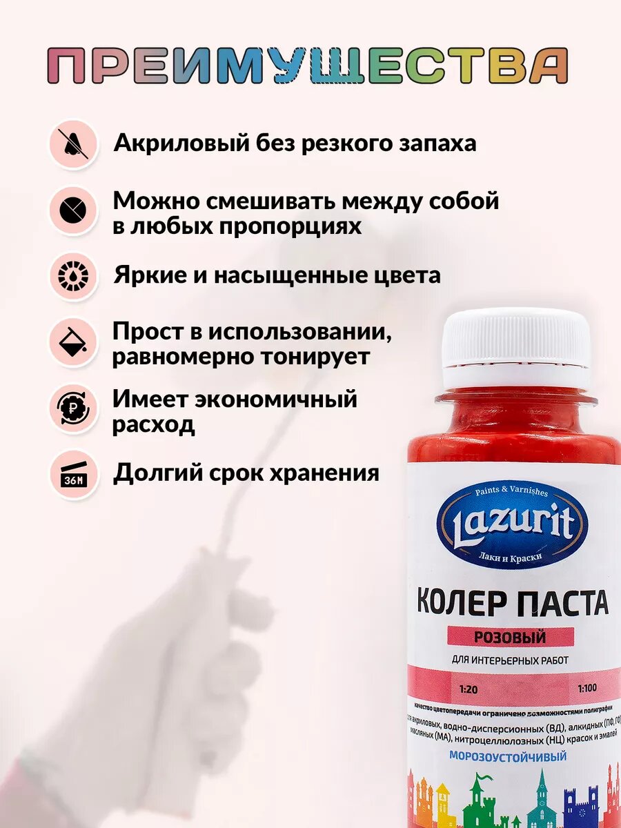 Колер-паста LAZURIT розовый 100 мл/6шт информация: