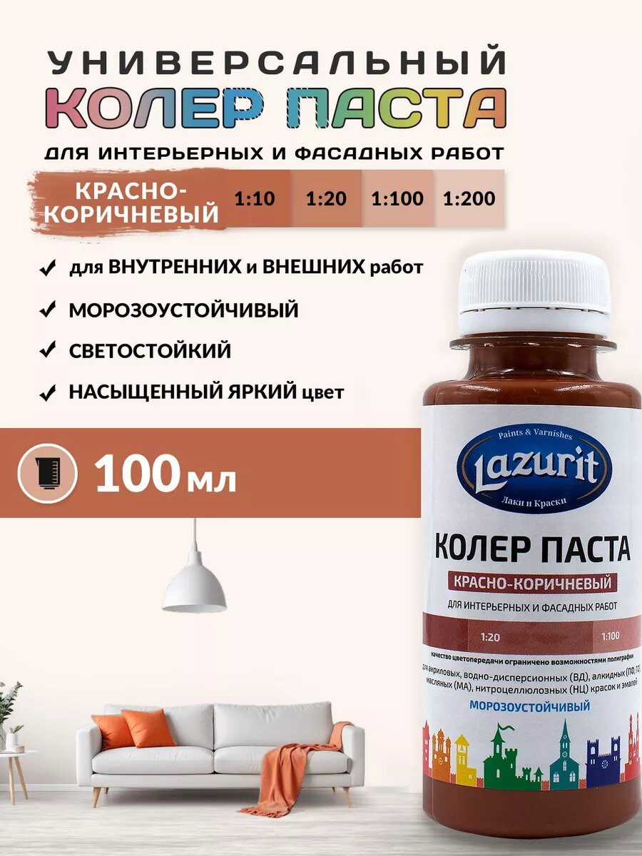 Колер-паста LAZURIT красно-коричневый 100 мл/1шт информация: