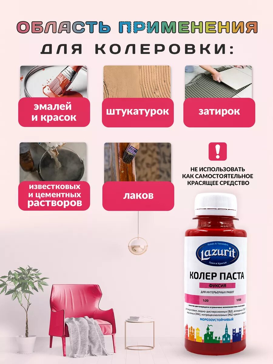 Колер-паста LAZURIT фуксия 100 мл/6шт информация: