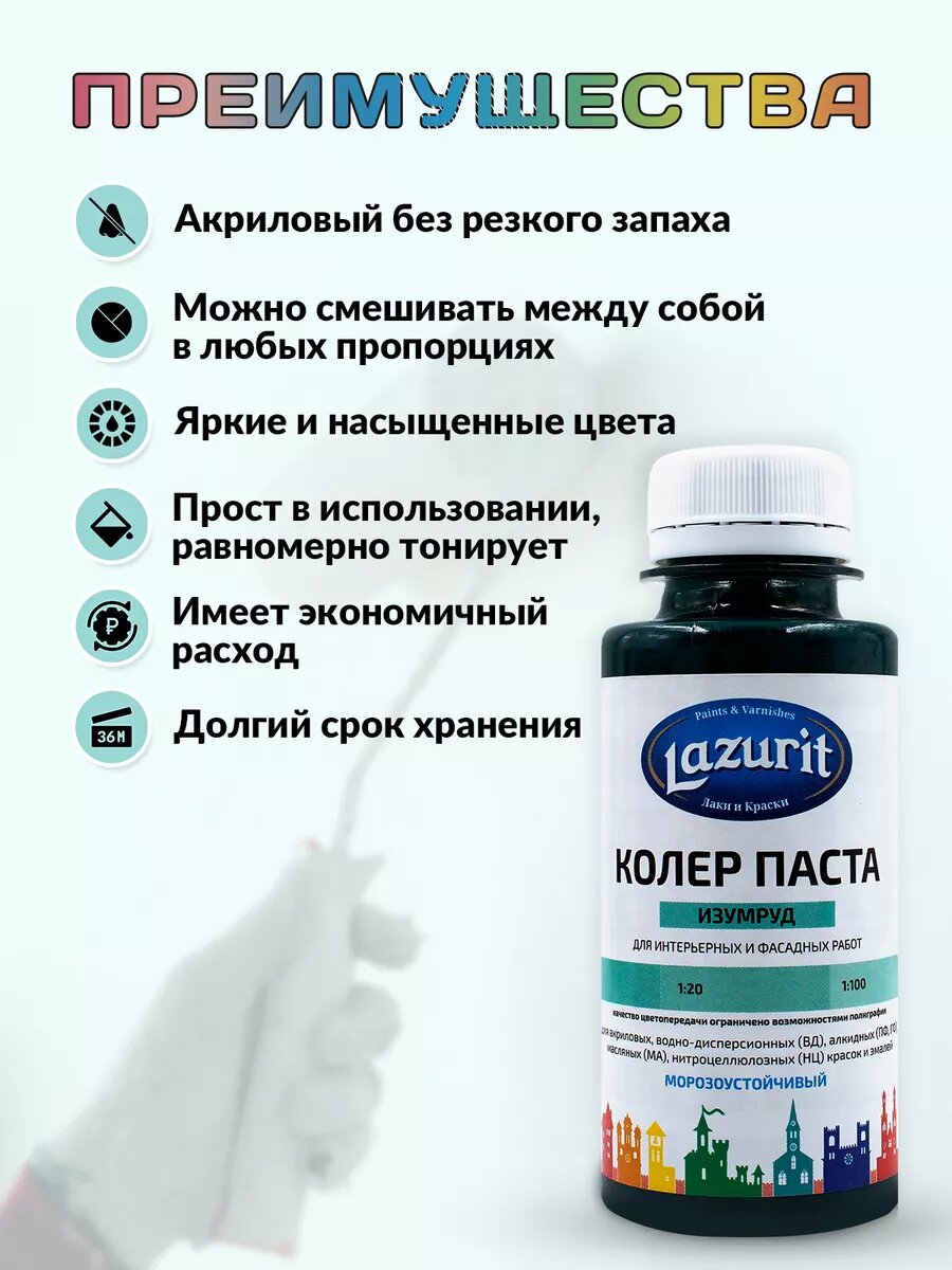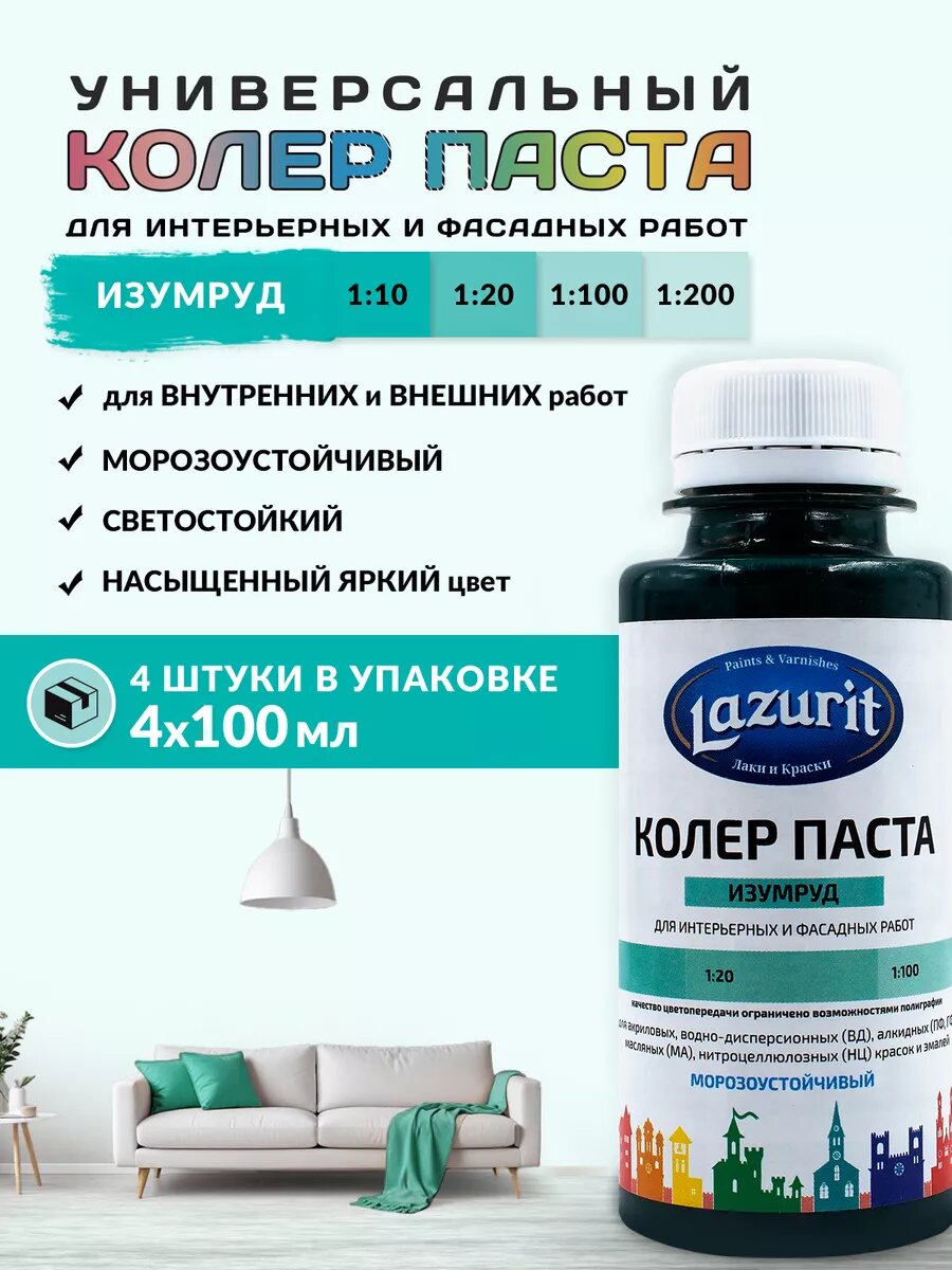 Колер-паста LAZURIT изумруд 100 мл/4шт информация: