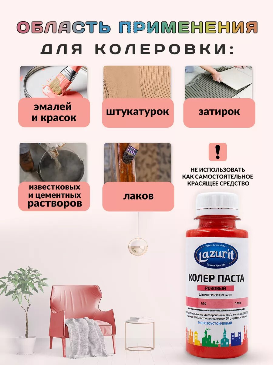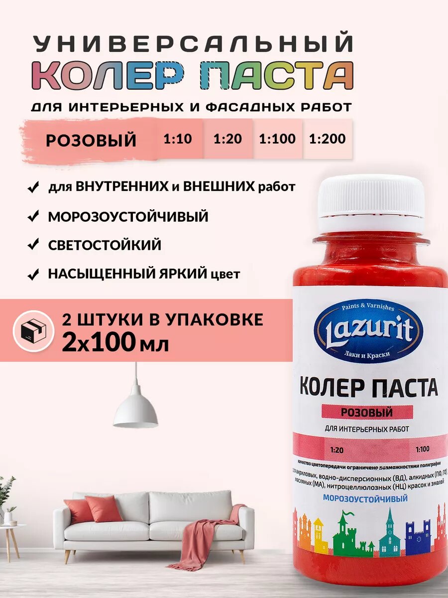 Колер-паста LAZURIT розовый 100 мл/2шт информация:
