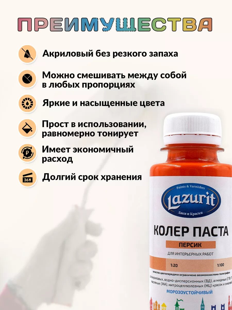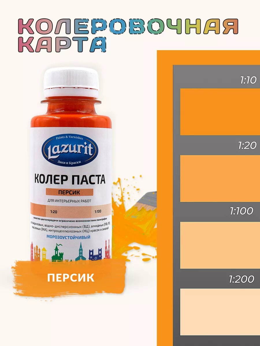Колер-паста LAZURIT персик 100 мл/4шт информация: