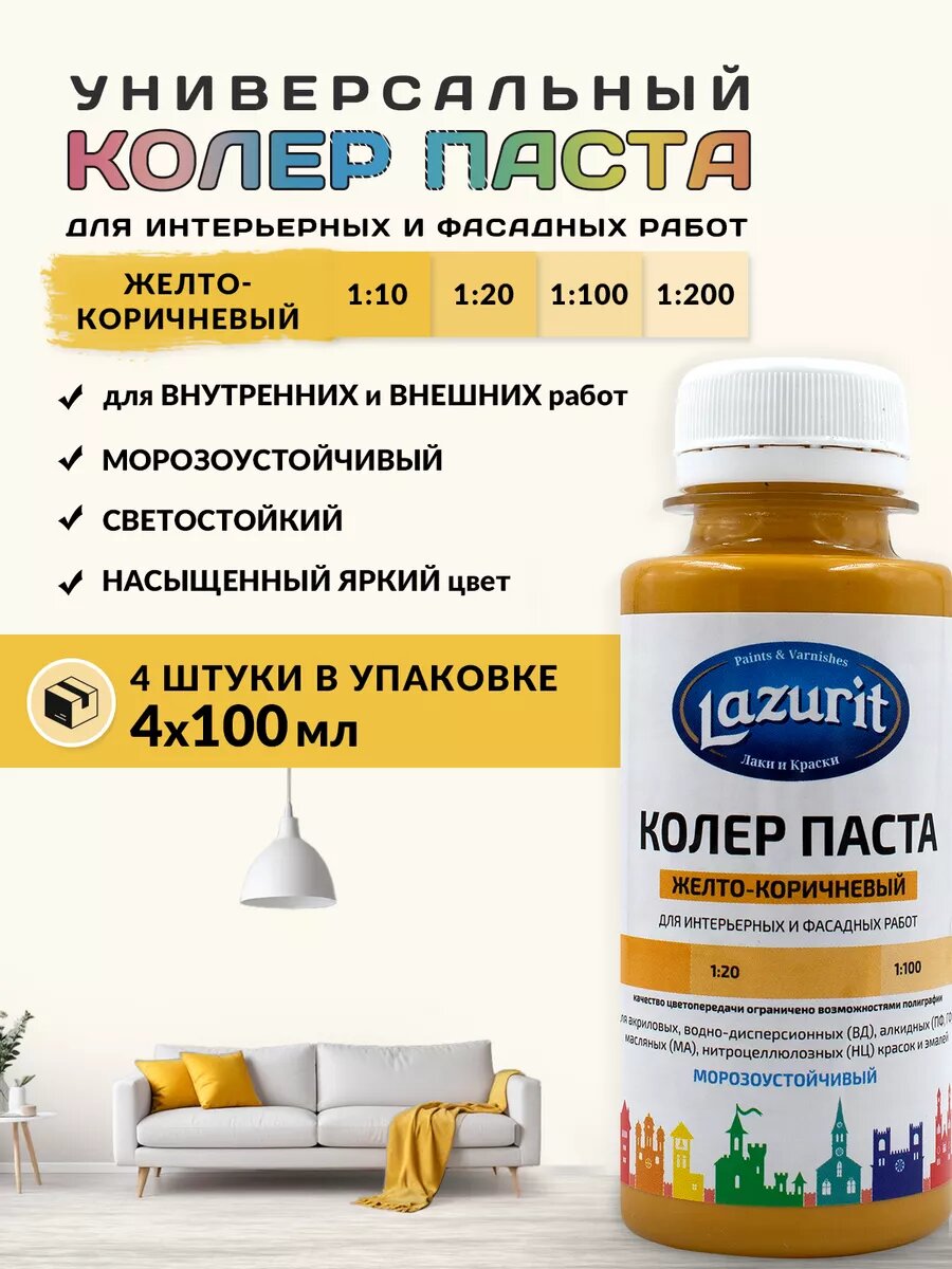Колер-паста LAZURIT желто-коричневый 100 мл/4шт информация: