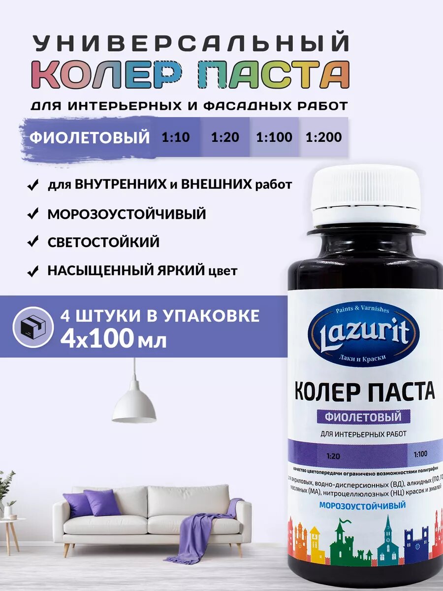 10 цен на Колер-паста LAZURIT фиолетовый 100 мл/4шт