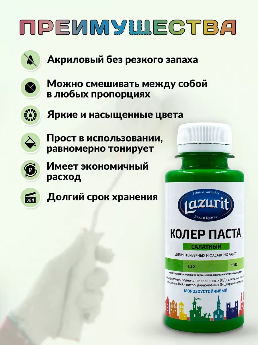 Колер-паста LAZURIT салатный 100 мл/1шт информация: