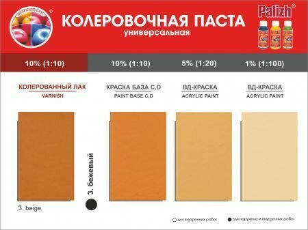 Колер палитра Palizh Universal Standart №3 Цвет Бежевый 0,1л