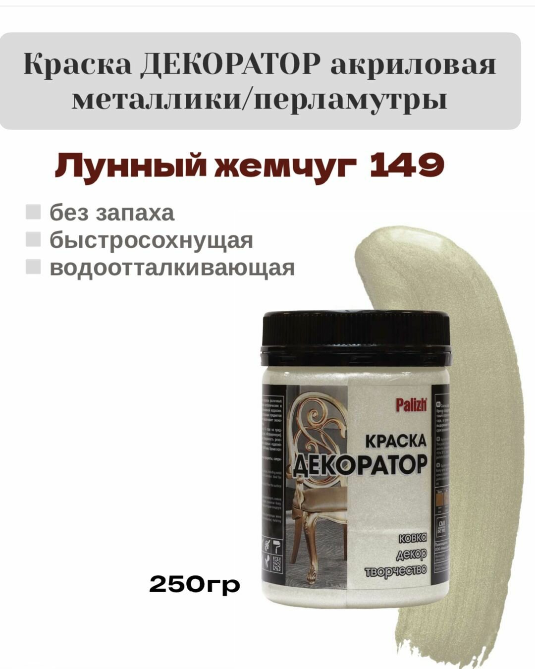 Краска Декоратор акриловая быстросохнущая Palizh перламутр Лунный жемчуг 0,25кг информация: