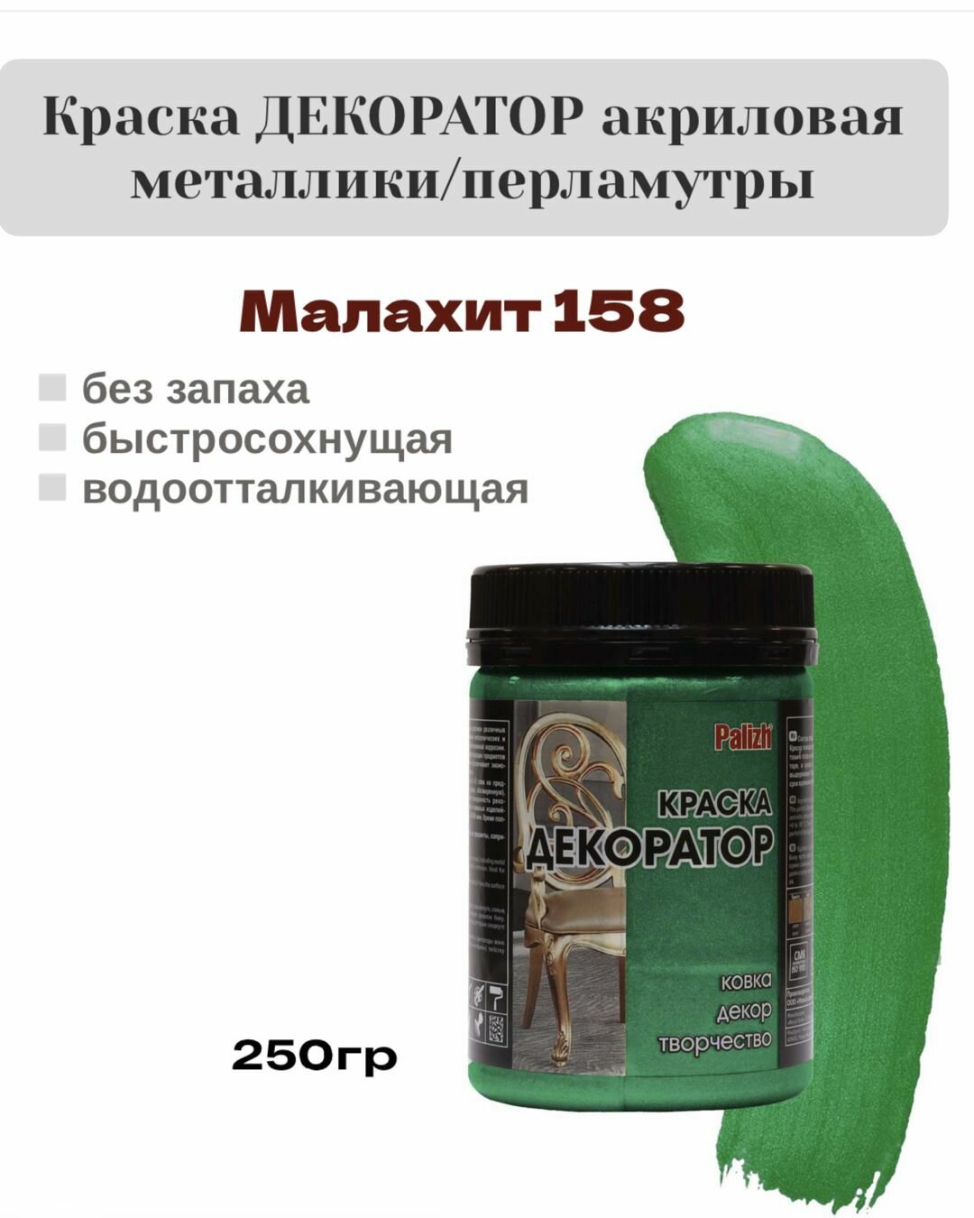 Краска Декоратор акриловая быстросохнущая Palizh перламутр Малахит 0,25кг информация: