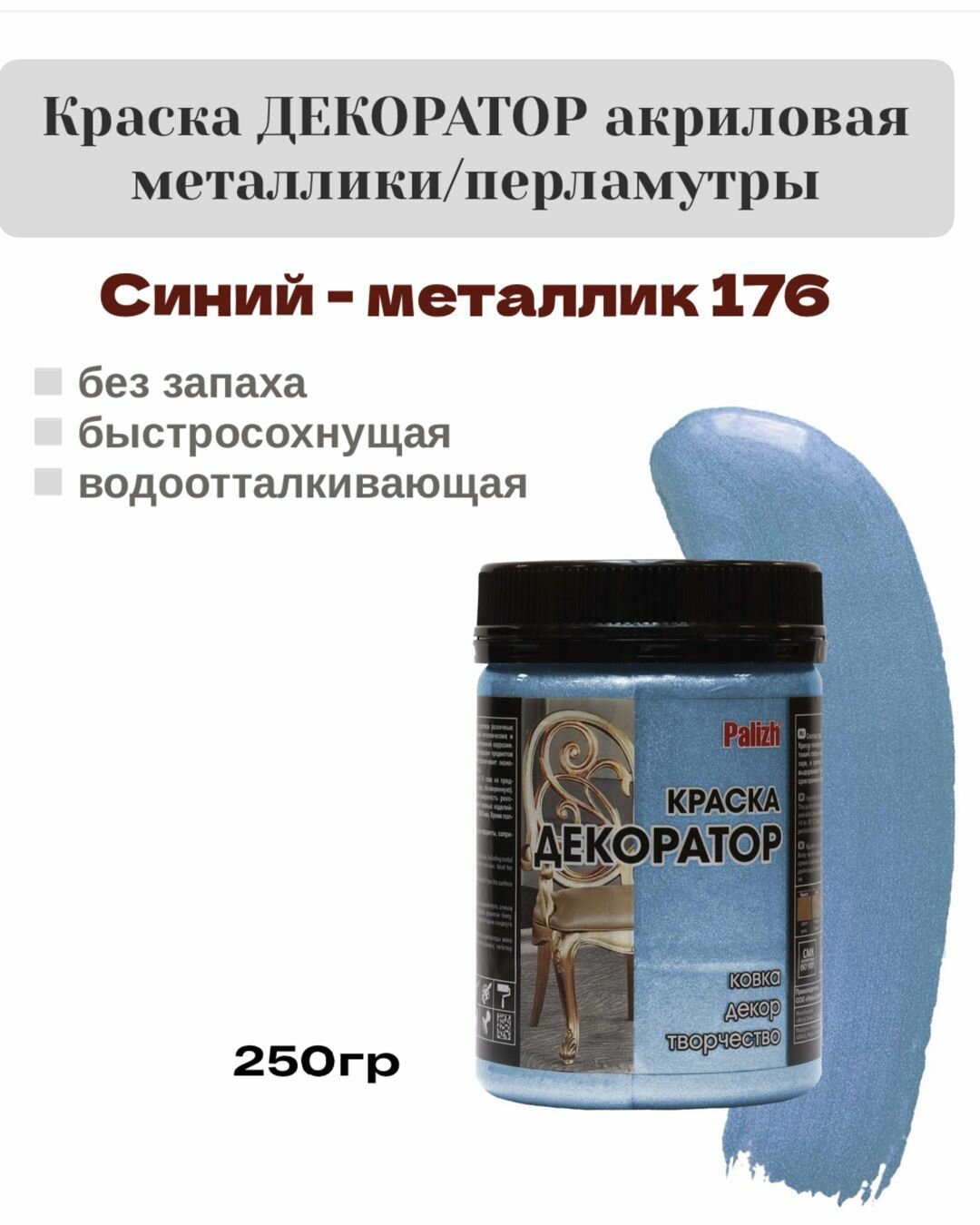 Отзывы на Краска Декоратор акриловая быстросохнущая Palizh Синий металлик 0,25кг