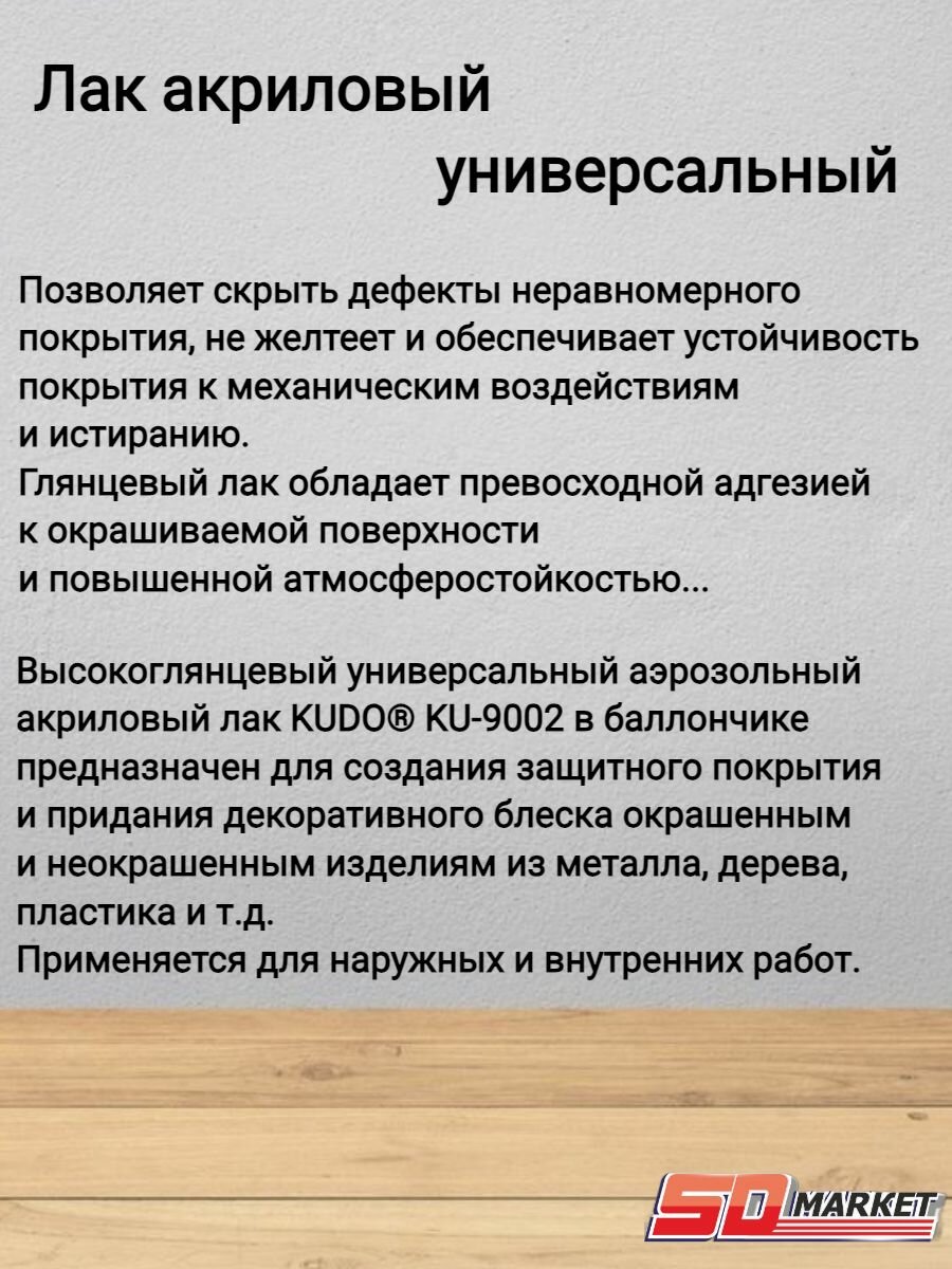 10 цен на Лак акриловый KUDO аэрозоль бесцветный глянцевый 520мл