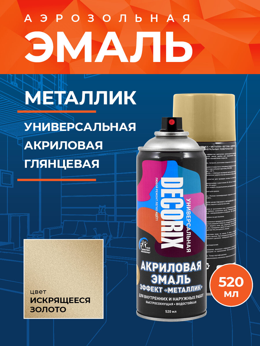 DECORIX Аэрозольная краска универсальная металлик, цвет Искрящееся золото, 520 мл информация: