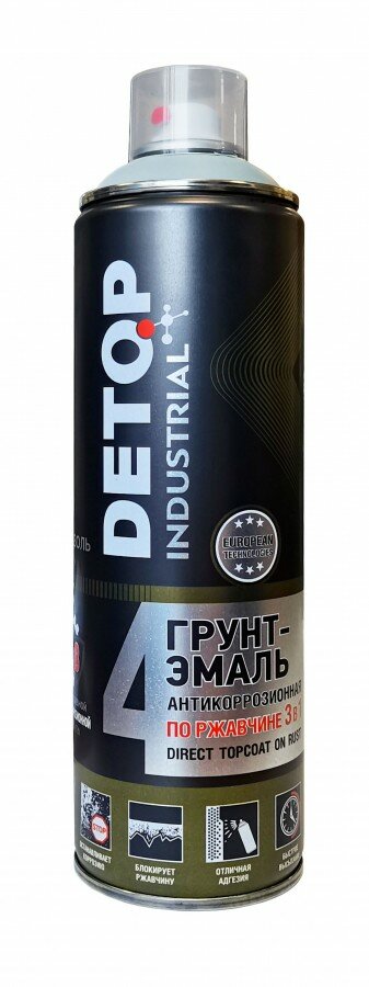 DETOP Грунт-эмаль аэрозоль 650мл антикоррозия по ржавчине 3 в 1 - 9004 № 4 черная арт.DTI-A07721 (арт. 827129) информация: