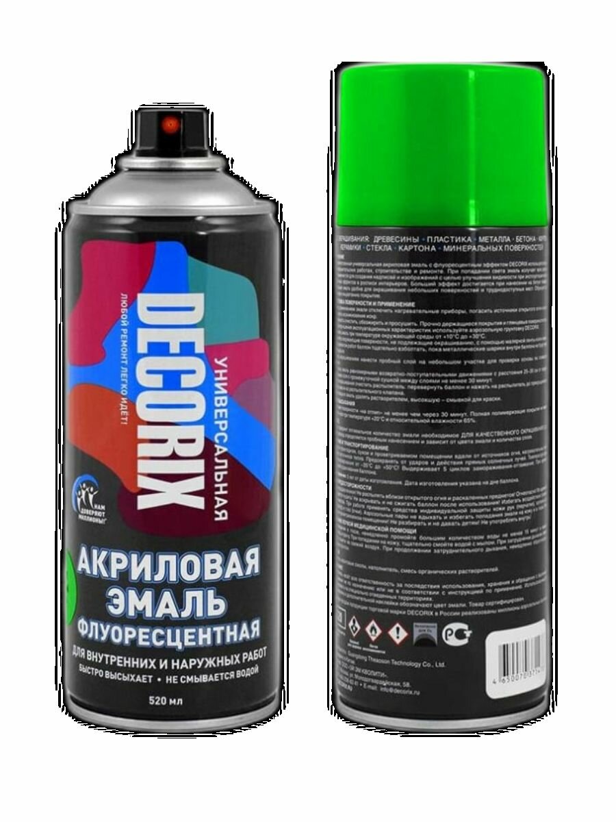 Аэрозольная краска эмаль флуоресцентная,зеленый 520 мл информация: