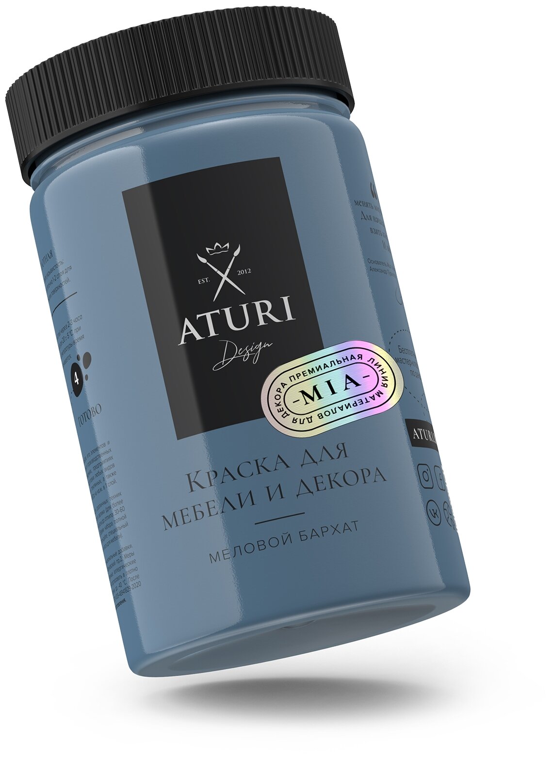 Краска Aturi Design Mia для мебели и декора, кухни и деревянных поверхностей, для дверей, стекла. Без запаха. Не токсичная.меловой бархат; Цвет: Ночное притяжение, Быстросохнущая, Матовая, синий 400гр информация: