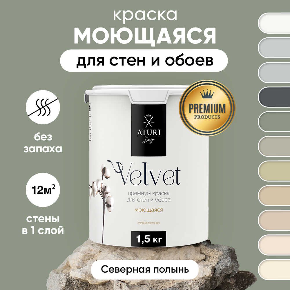 10 цен на Краска Aturi Design Mia интерьерная, для стен, моющаяся; Цвет: Северная полынь, 1,5 кг