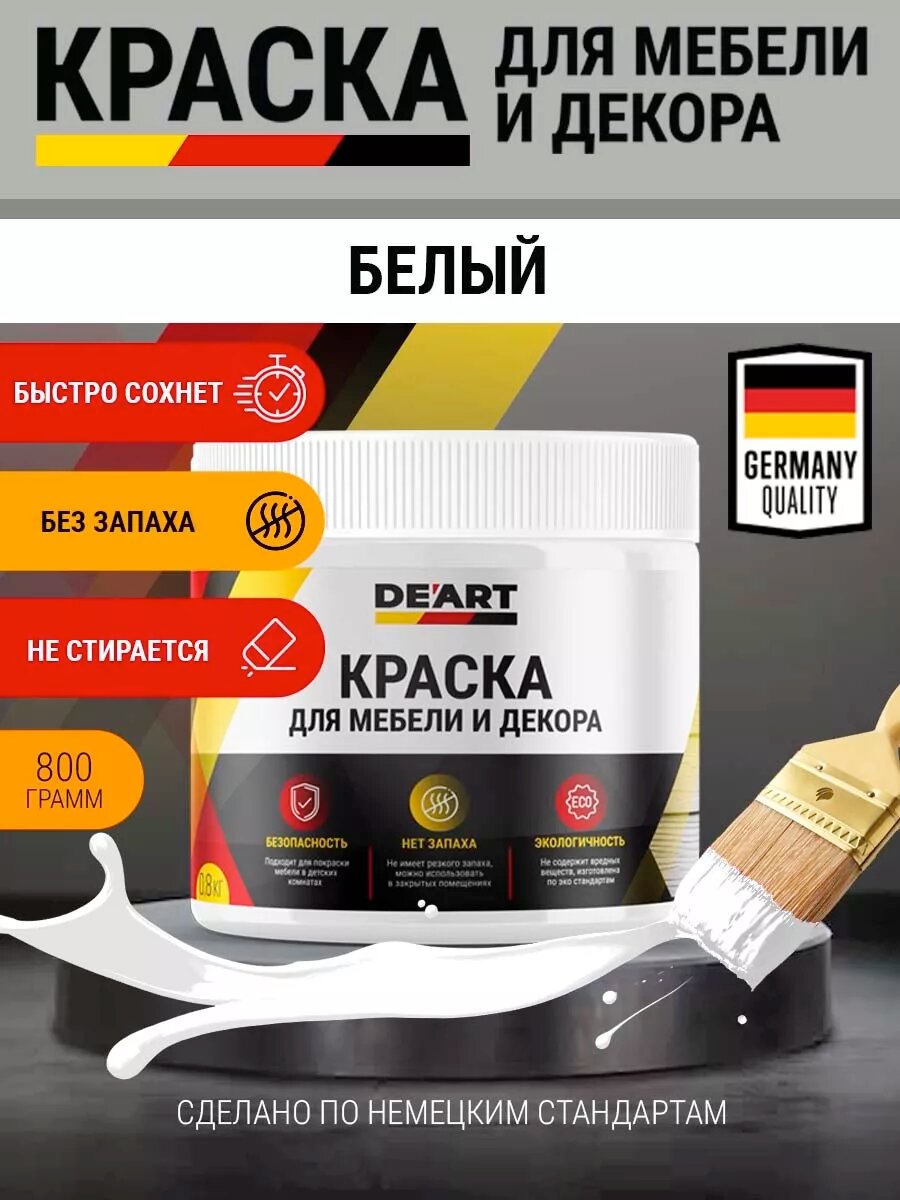 Краска для мебели и декора, матовая белая, объем 0.8л информация: