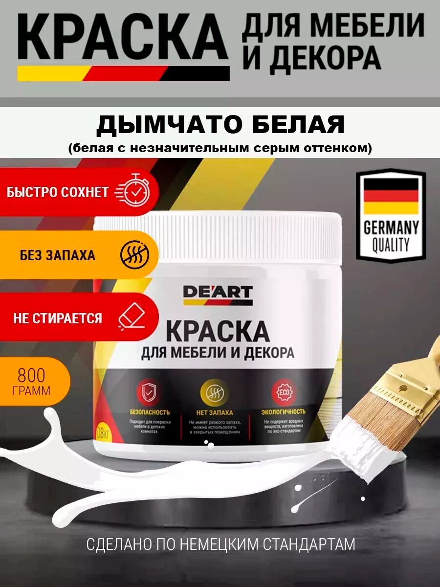 Краска для мебели и интерьера, дымчато-белая, объем 0.8л информация: