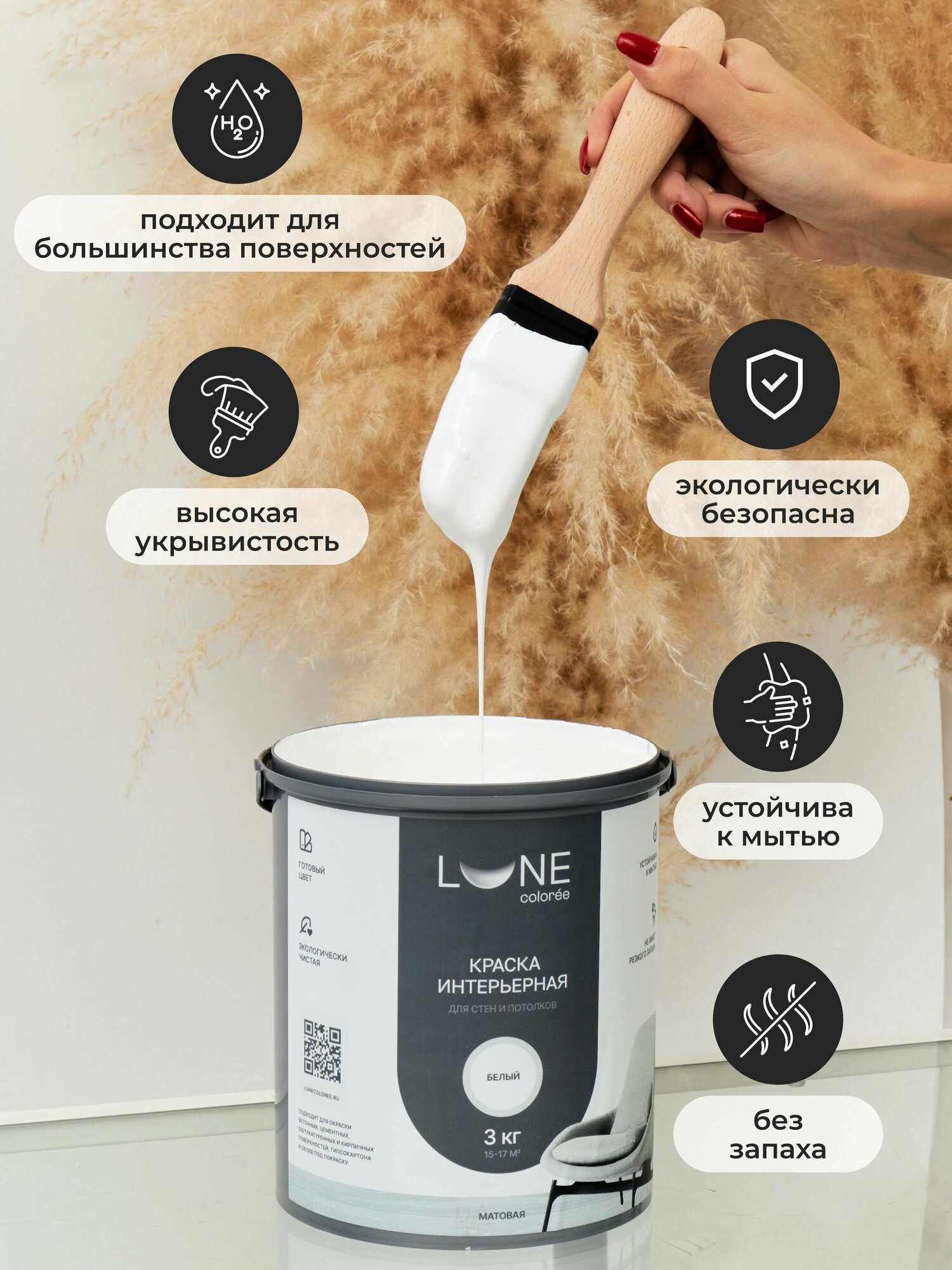 Интерьерная краска для стен и потолков Lune Coloree моющаяся, матовая, белая 3кг информация: