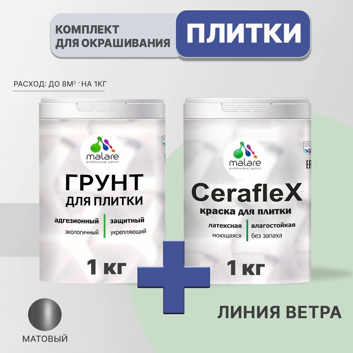 Комплект Malare для окрашивания плитки и кафеля (1кг грунт + 1кг краска), акриловый, без запаха, быстросохнущий, матовый, цвет темно-серый 2 177 ₽