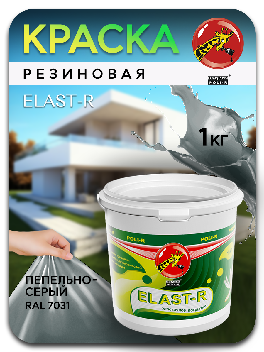 Эластичная краска Poli-R "Elast-R" 1кг, пепельно-серая, матовая, однокомпонентная информация: