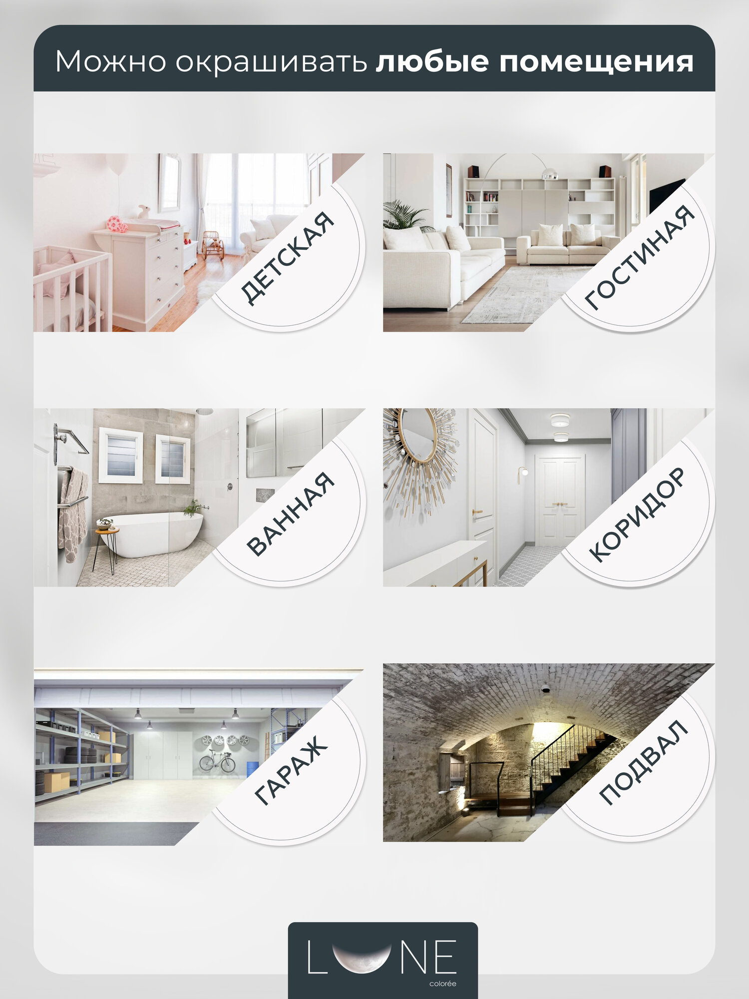 Интерьерная краска для стен и потолков Lune Coloree моющаяся, матовая, светло-серый 3кг
