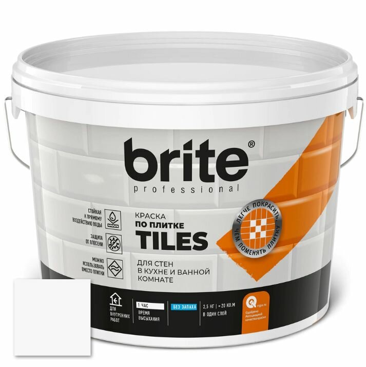 Краска по плитке акриловая brite Tiles 2,5 л белая (база A) информация: