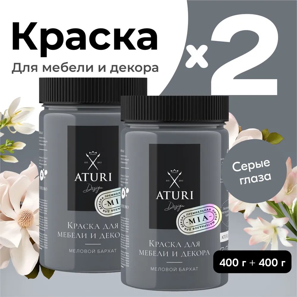 Набор 2 шт по 0,4 кг. Матовая краска для мебели без запаха, меловая быстросохнущая Aturi Design для декора, кухни и кухонных фасадов, дверей, пластика и металла. Цвет: Серые глаза, серый информация: