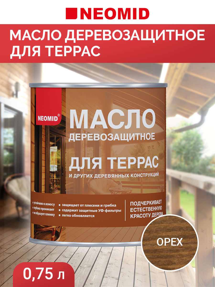 Отзывы на Масло для Террас Neomid 0.75л Орех, Деревозащитное для Внутренних и Наружных Работ / Неомид.