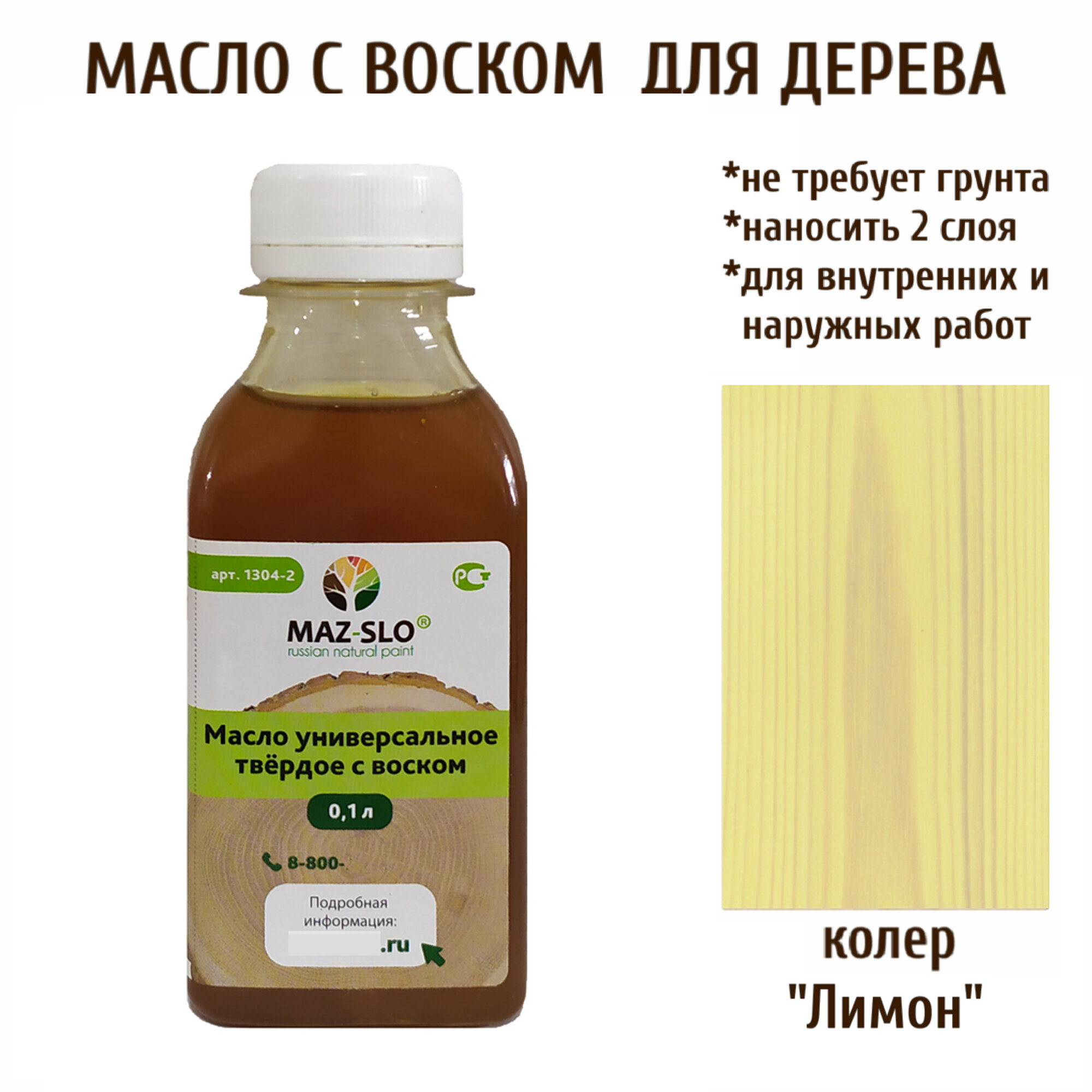 Масло твердое универсальное для наружных и внутренних работ с воском MAZ-SLO 100 мл цвет "Лимон" информация:
