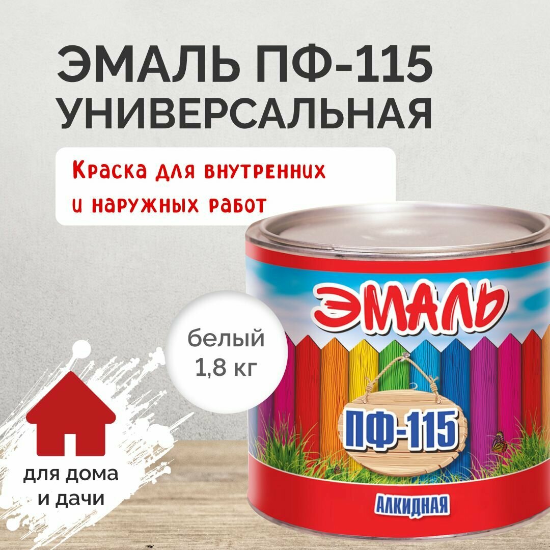 Эмаль ПФ-115 белая 1,8кг, краска универсальная гладкая полуглянцевая информация:
