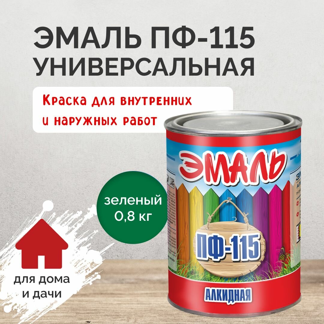 10 цен на Эмаль ПФ-115 зеленая 0,8кг, краска универсальная гладкая полуглянцевая