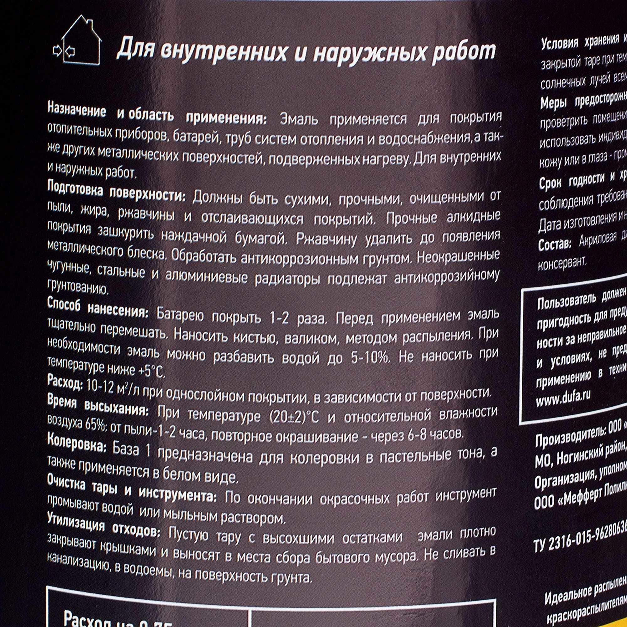 Эмаль для радиаторов Dufa Aqua-Heizkorperlack цвет белый 0.75 л информация: