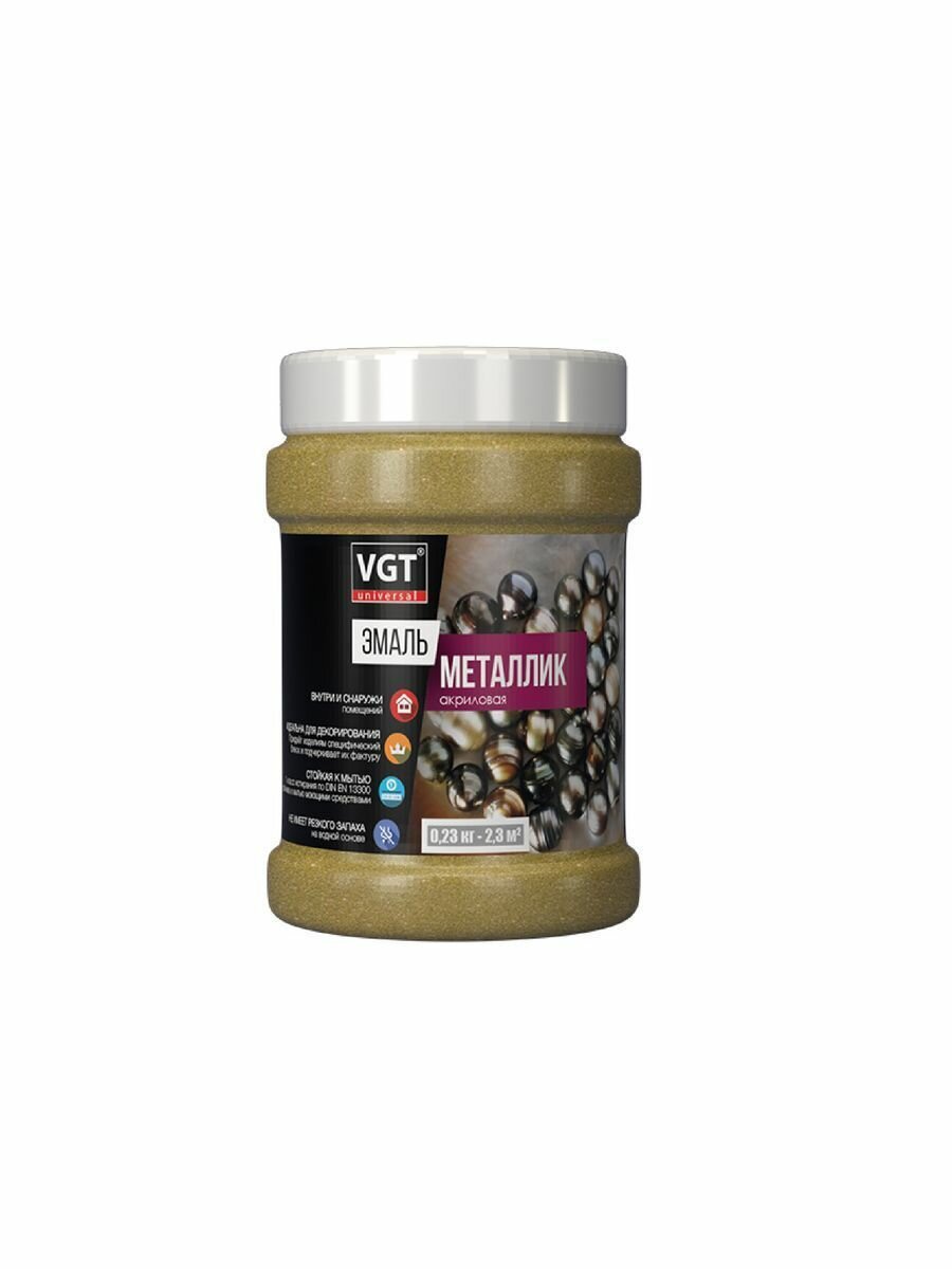 Эмаль универсальная vgt металлик 0,23кг золото