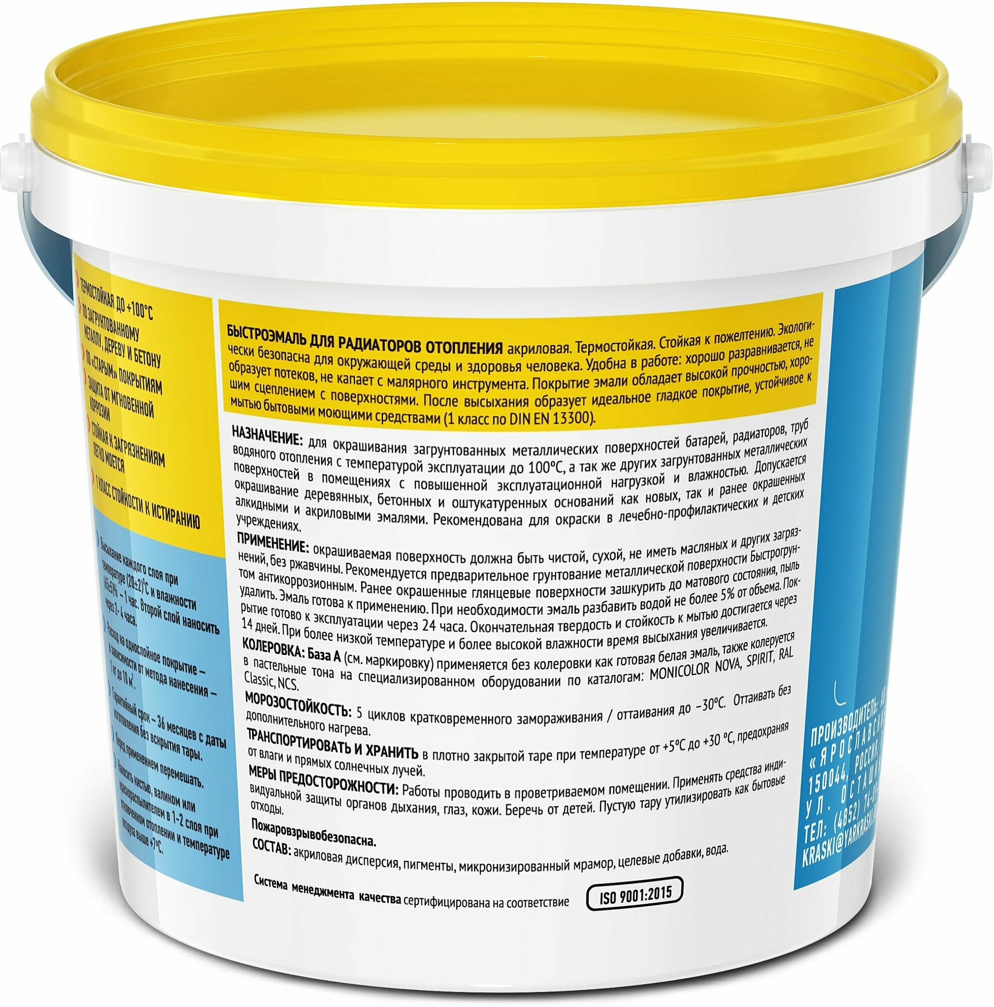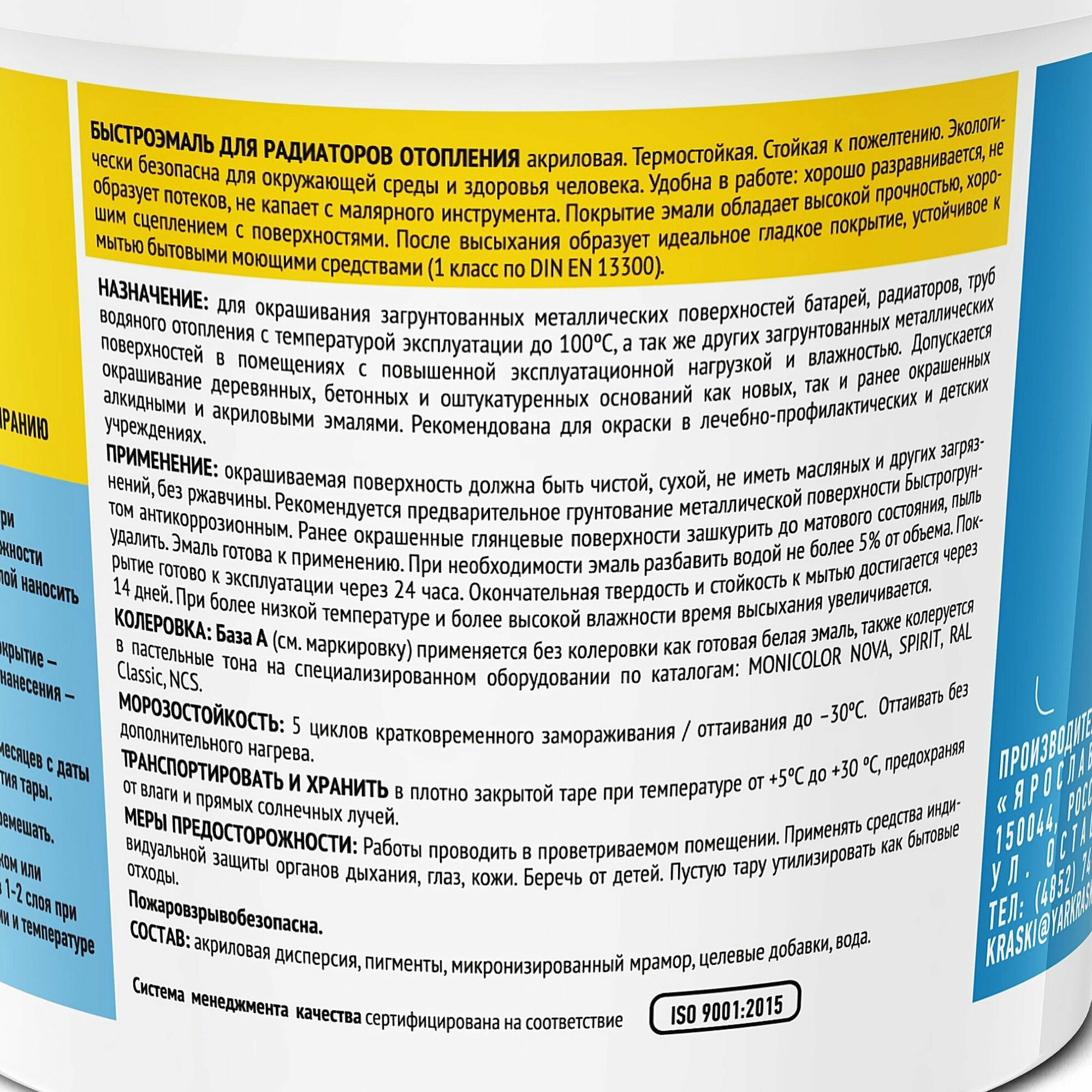 Быстроэмаль для радиаторов отопления белая матовая база А, ведро 0,9 кг информация: