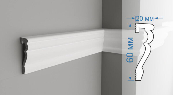 Молдинг для стен декоративный дюрополимер Экополимер Marca-Bello Senatore M60-20, 2000х60х20 мм, белый информация: