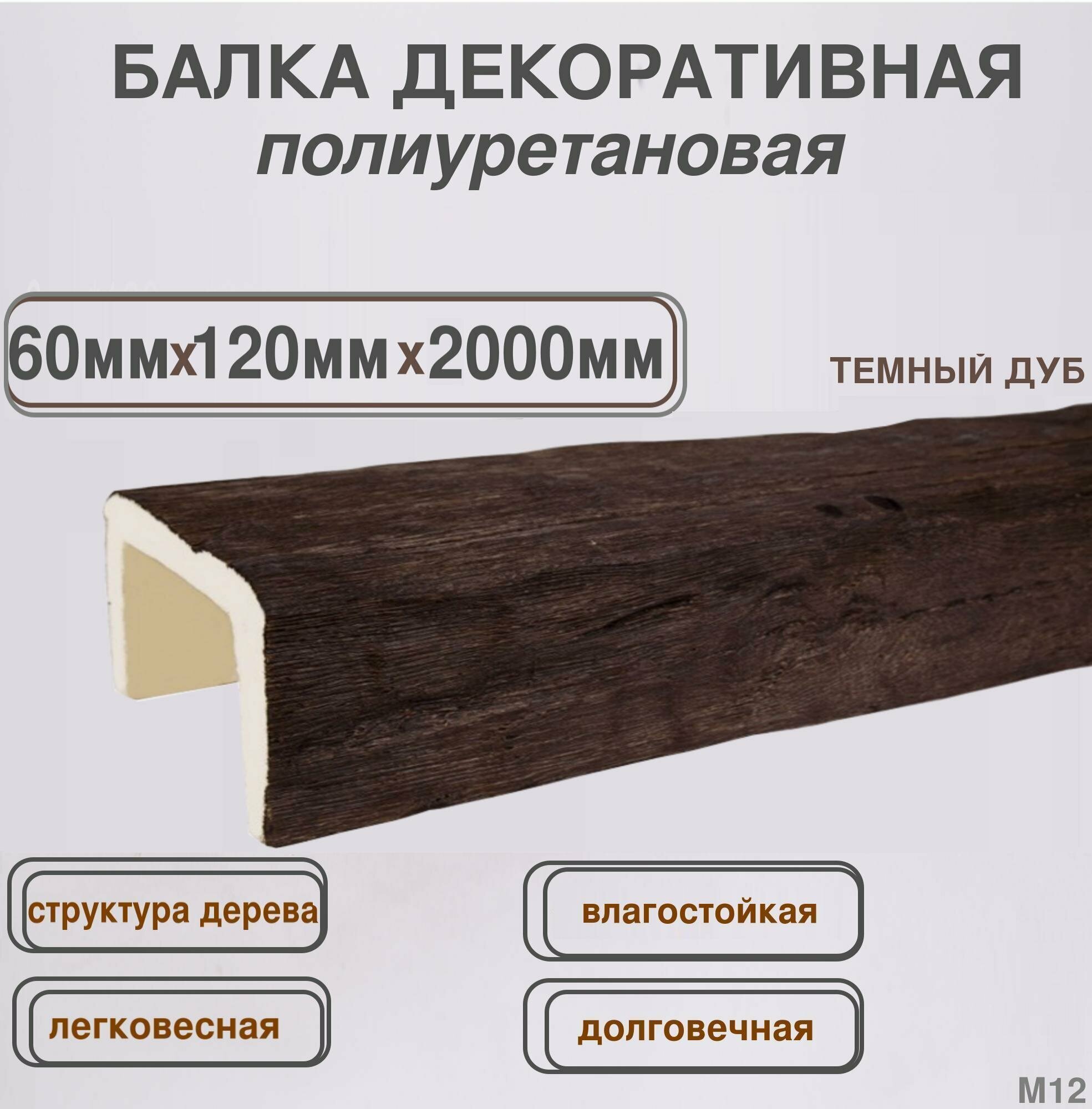 Декоративная балка из полиуретана имитация дерева 60ммх120ммх2000мм информация: