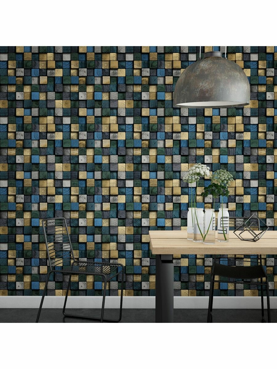 10 цен на Яркие моющиеся обои для кухни под дерево 53 см желтый,синий,зелено-серый