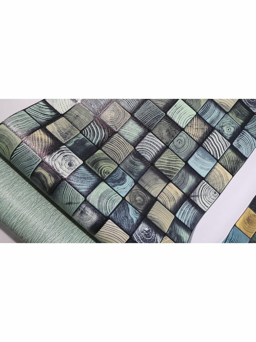 Яркие моющиеся обои для кухни под дерево 53 см желтый,синий,зелено-серый 900 ₽