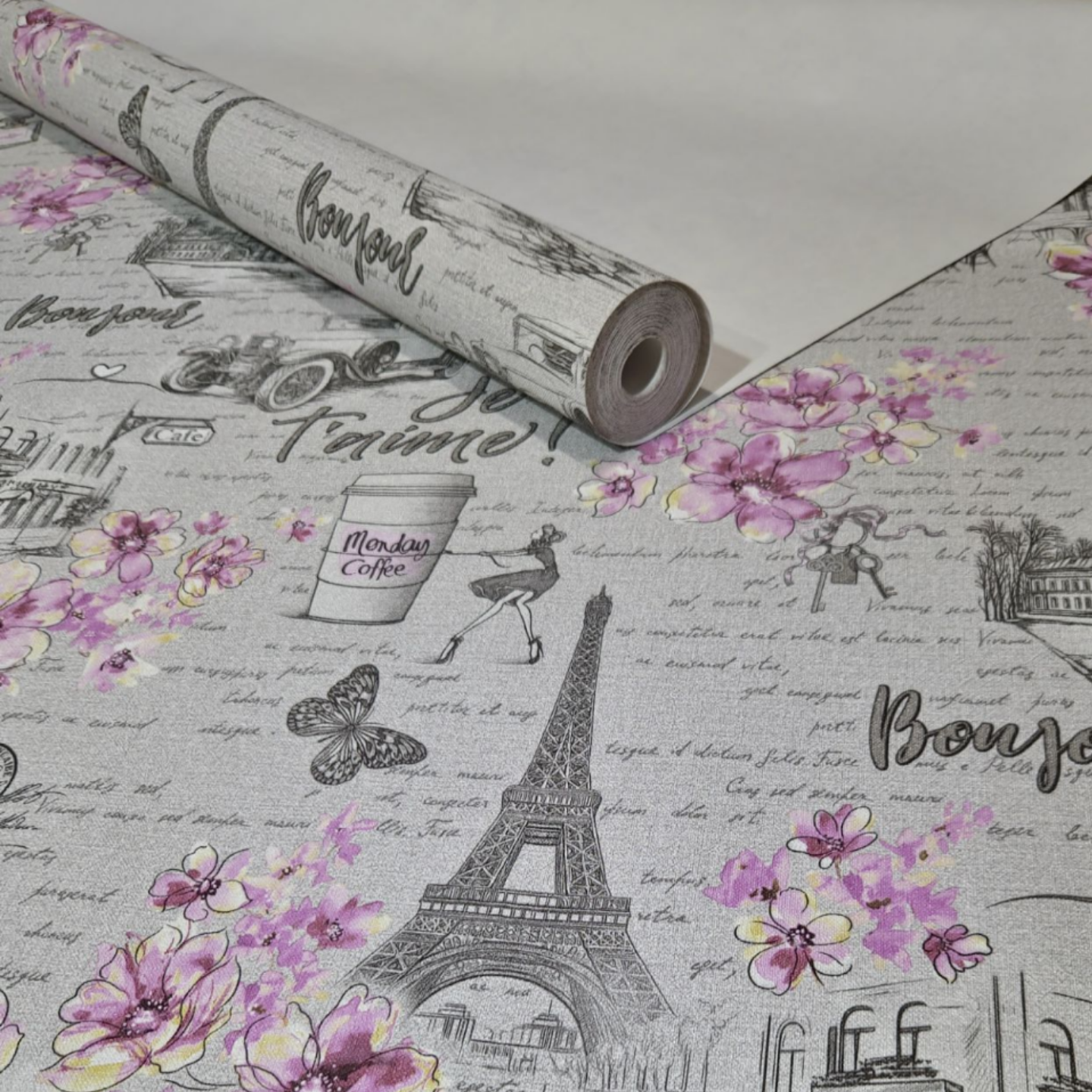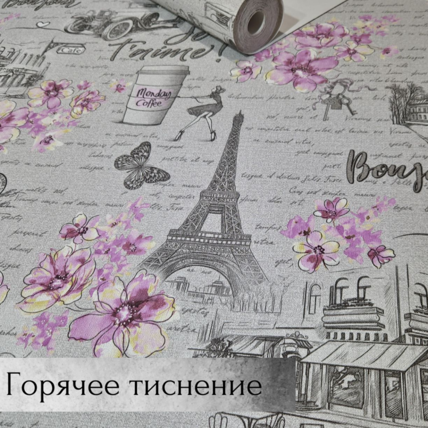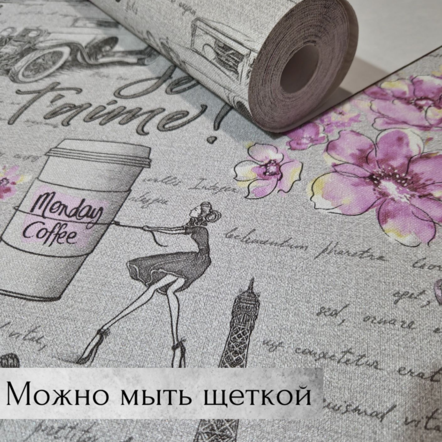 Отзывы на Обои "Бонжур" 21, флизелин, винил, 1,06х10, серые/розовые, для балкона/ванной/спальни